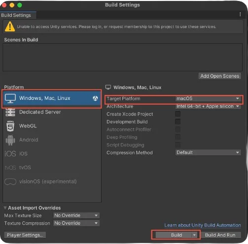 3. Click the Build button to build your game for WebGL.